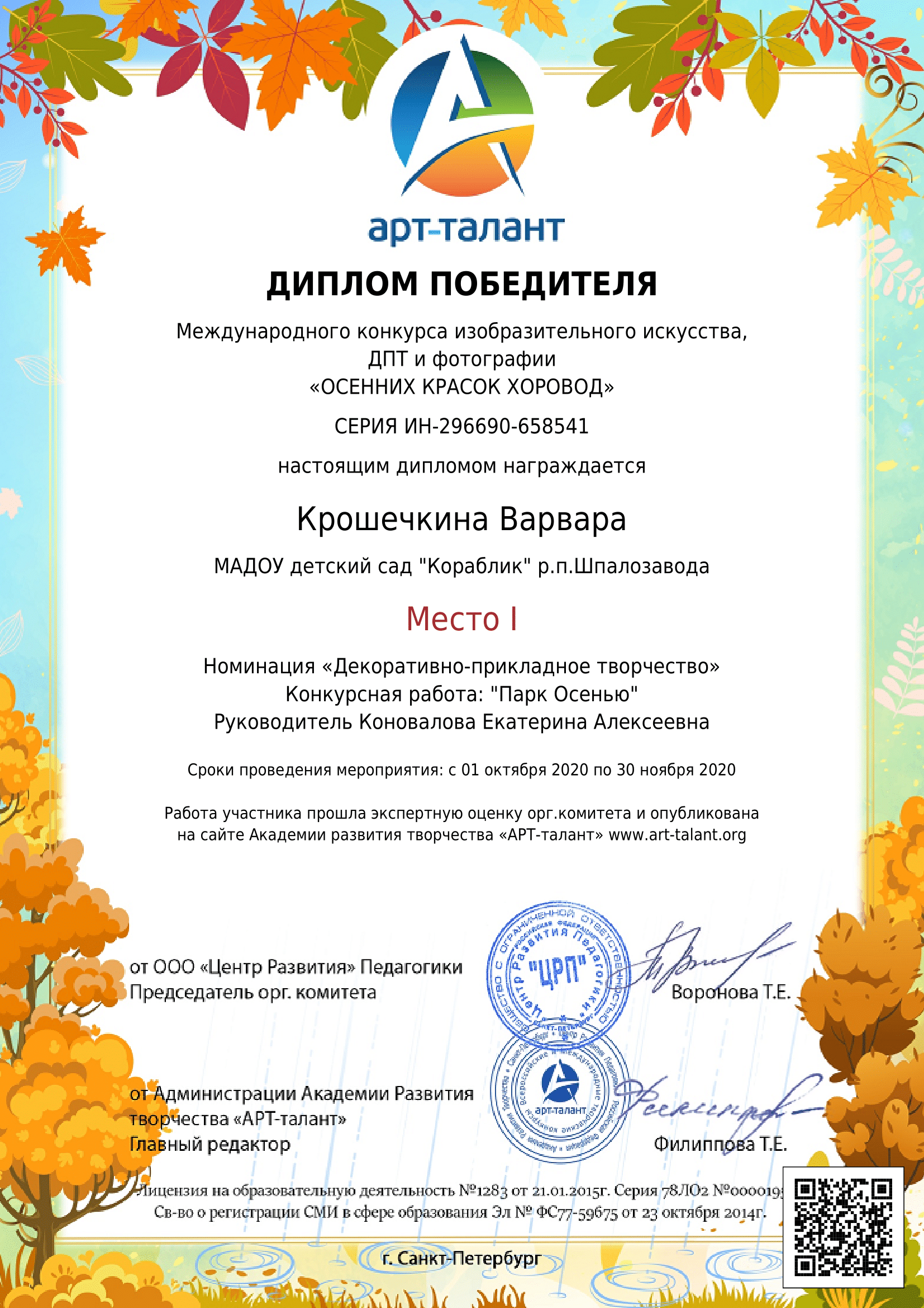 "НПФ "Институт профессиональной подготовки и повышения квалификации" "Система сопровождения ребенка с ОВЗ в общеразвивающем детском саду" 108 часов, 2020 г.