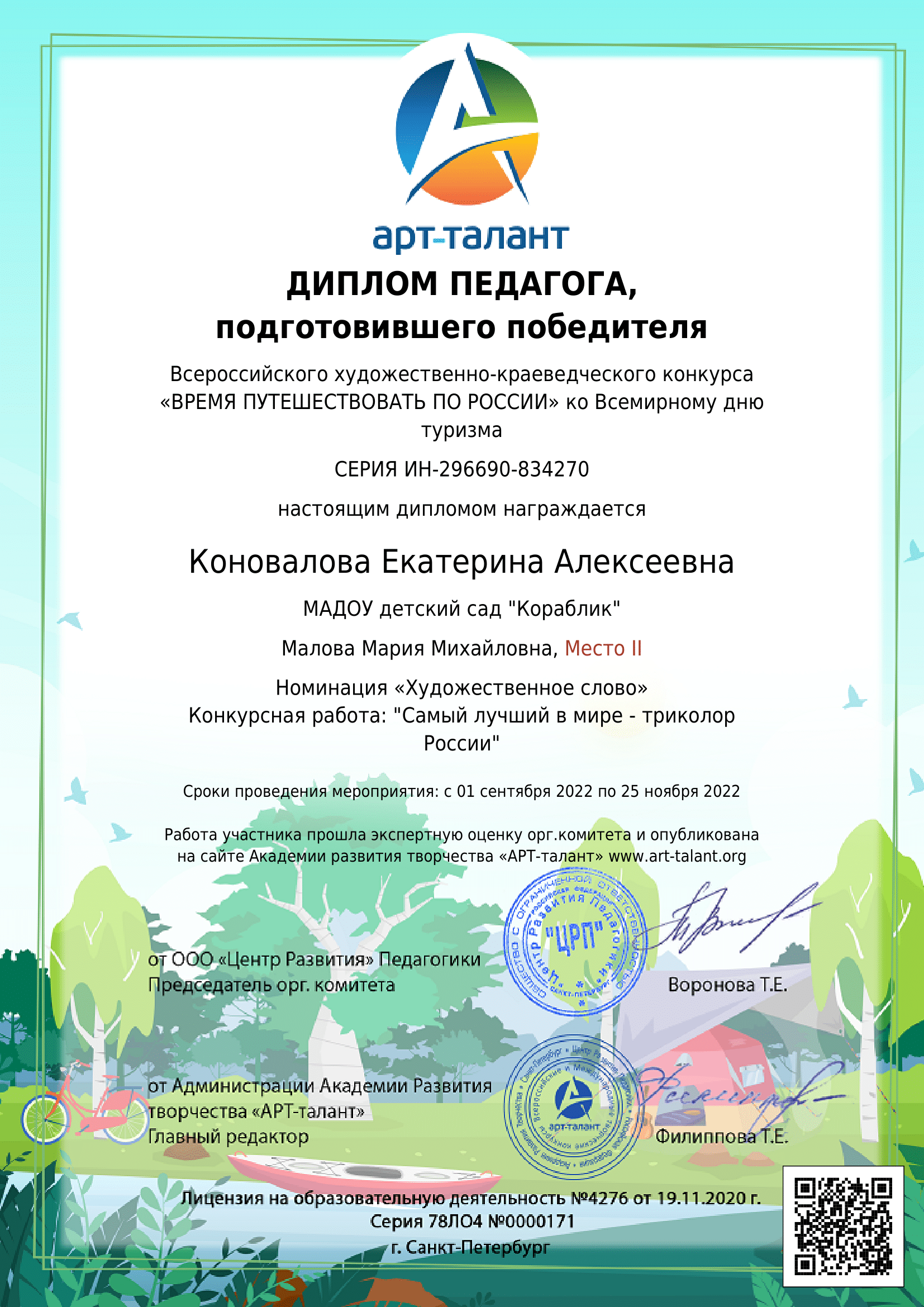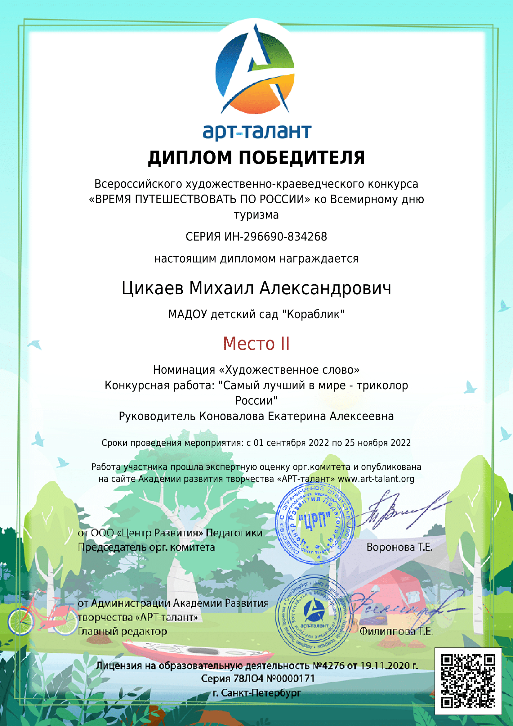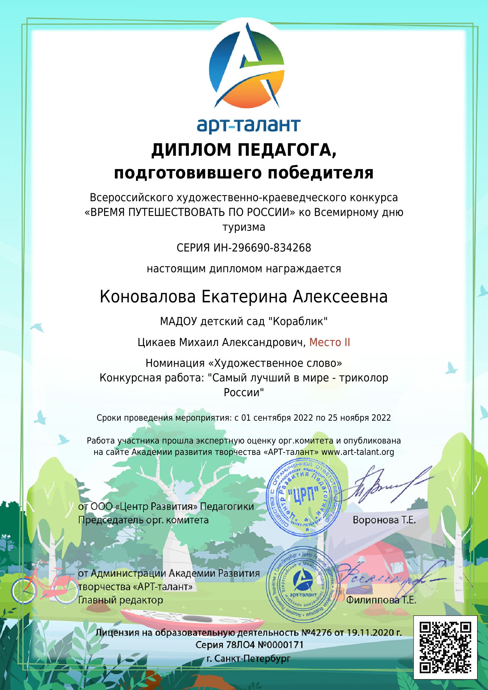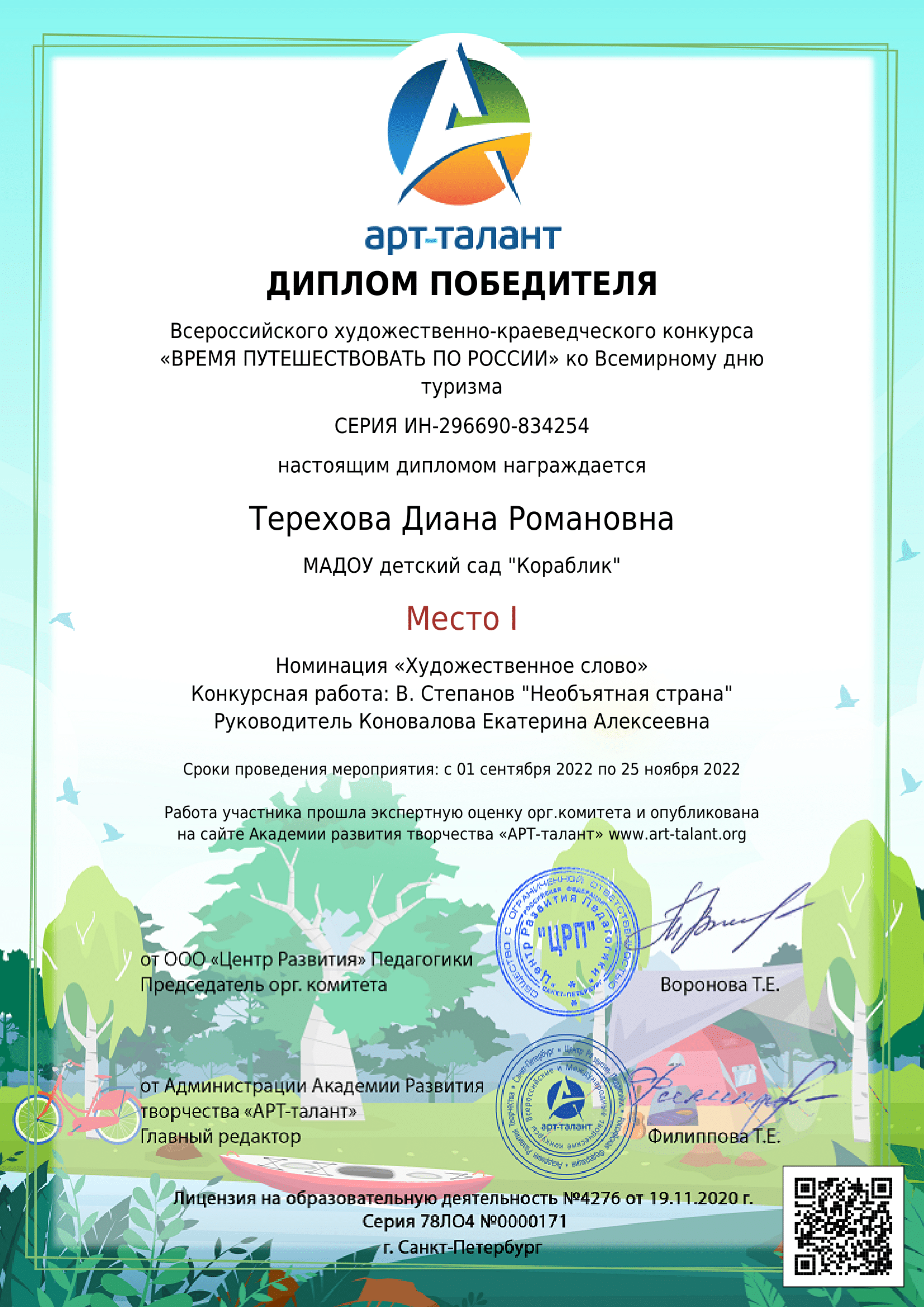 Образование: Среднее профессиональное, Нижегородский колледж малого бизнеса, 2020г. По специальности: «Гостиничный сервис»