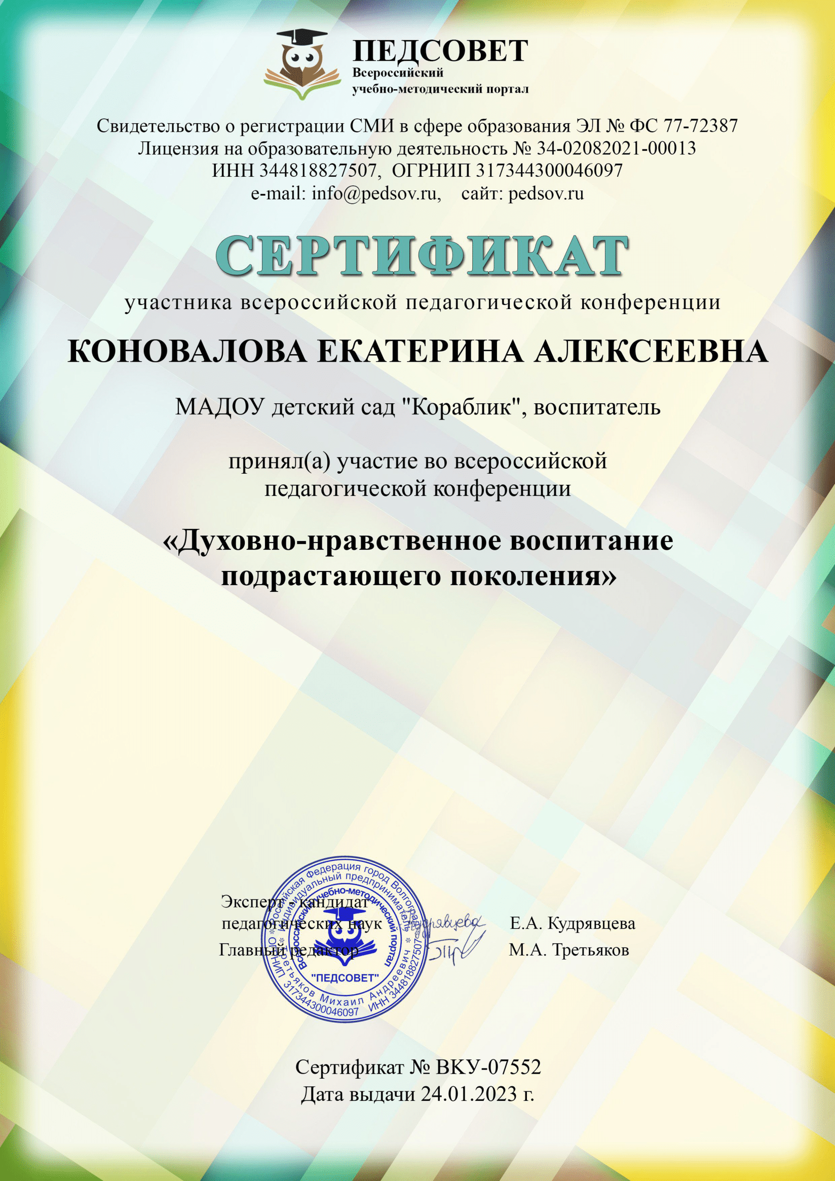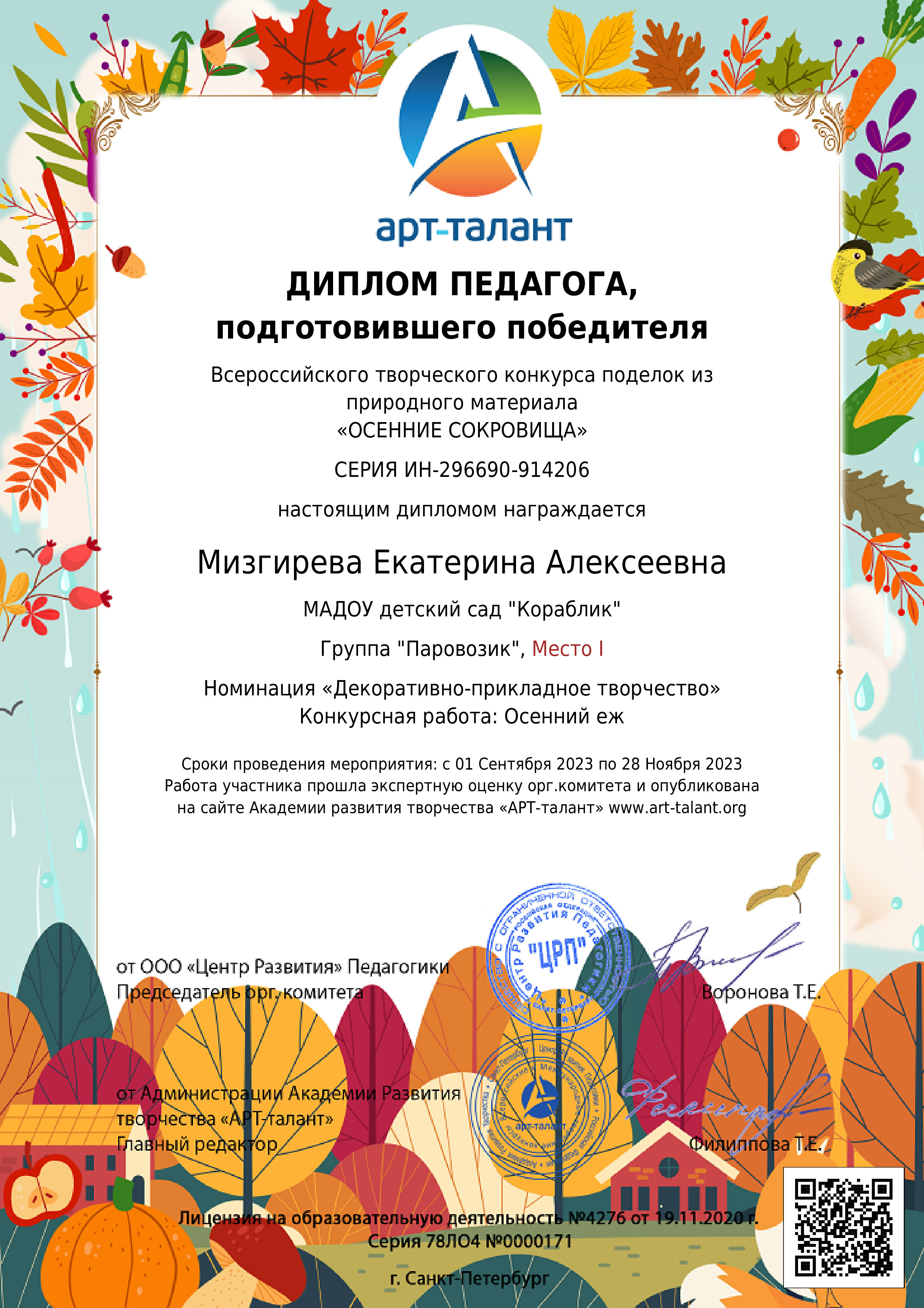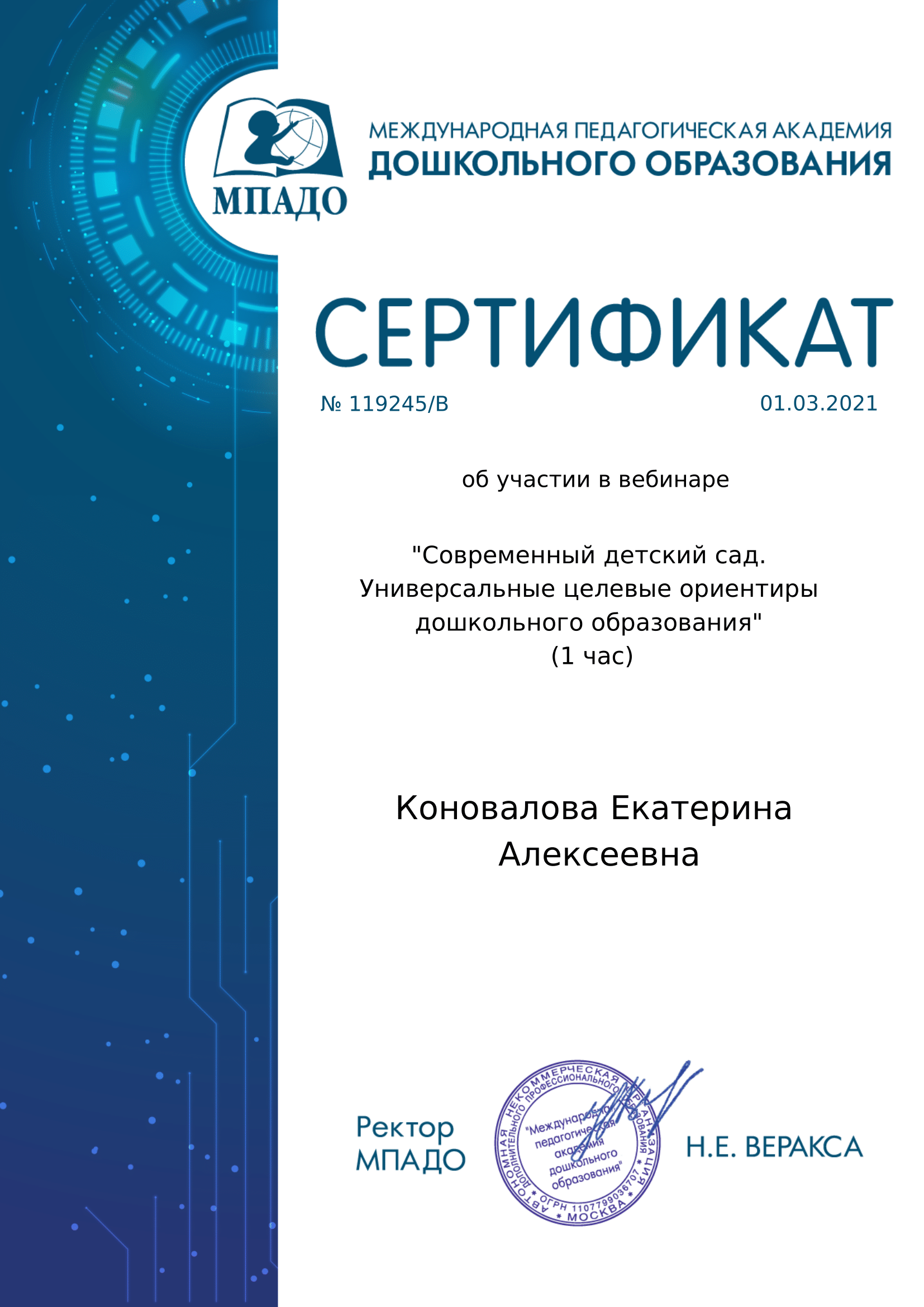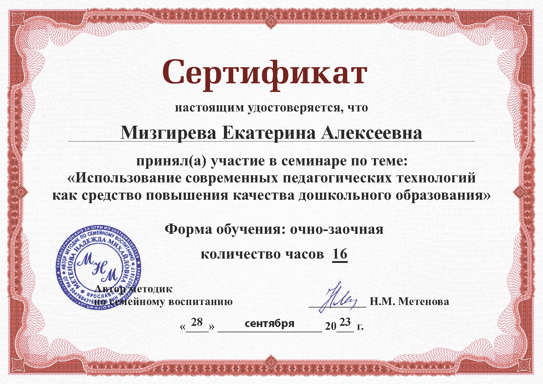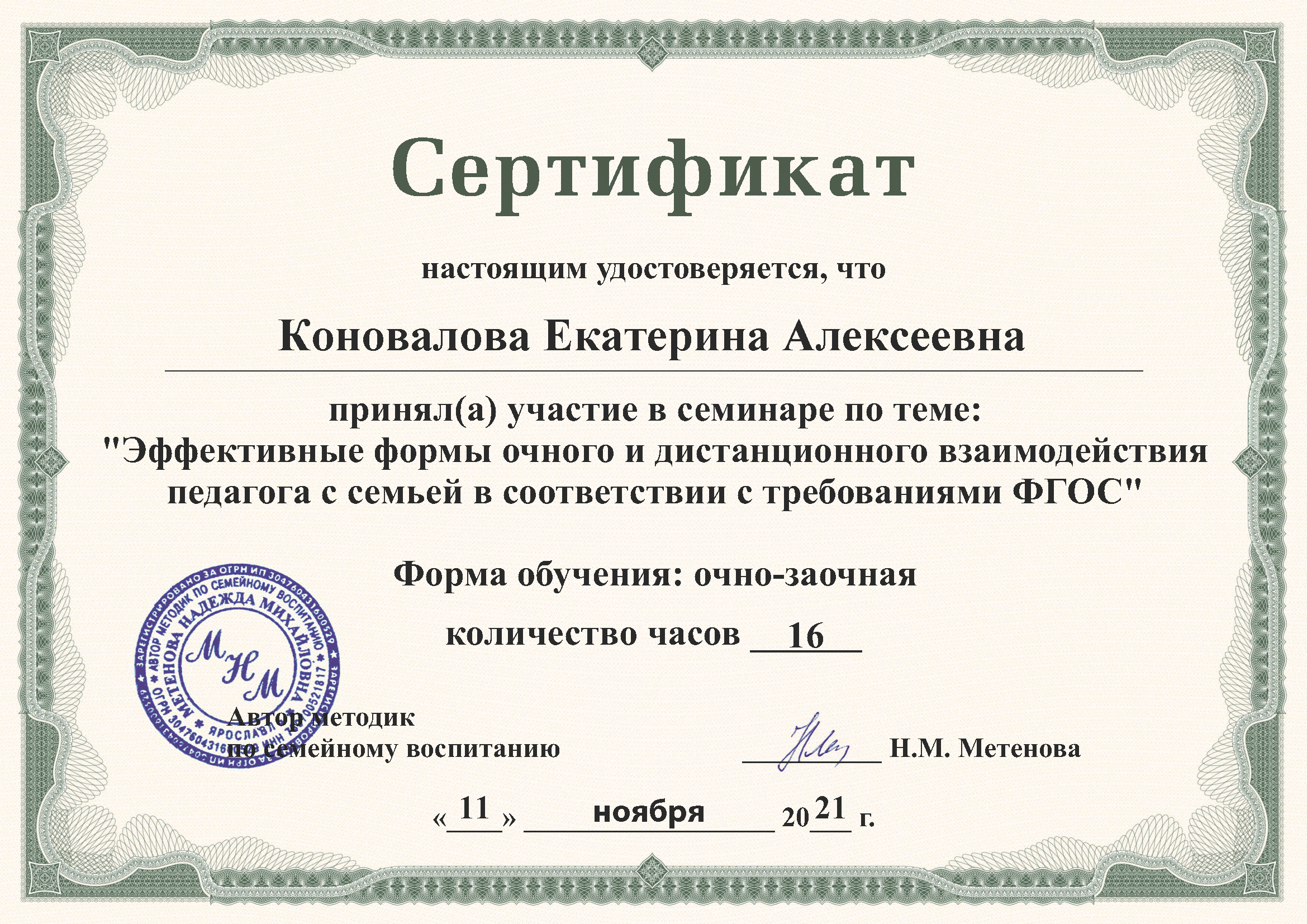 Нижегородский государственный педагогический университет им. Козьмы Минина, 2020-2021г. По специальности: «Педагогика и психология дошкольного образования»