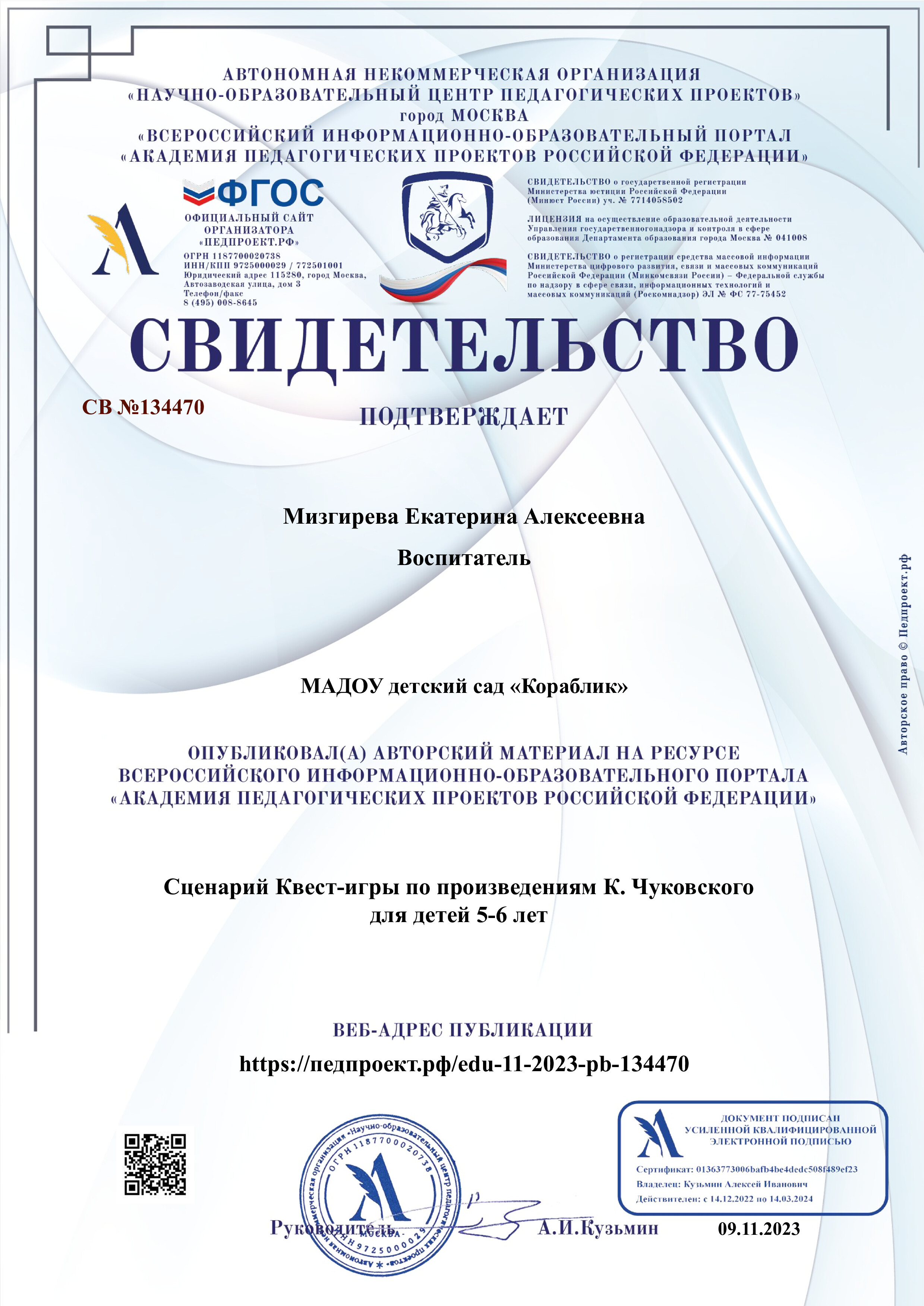 Школа менеджера образования «Организация развивающей предметно- пространственной среды детского сада по ФГОС ДО» 72 час, 2021г.