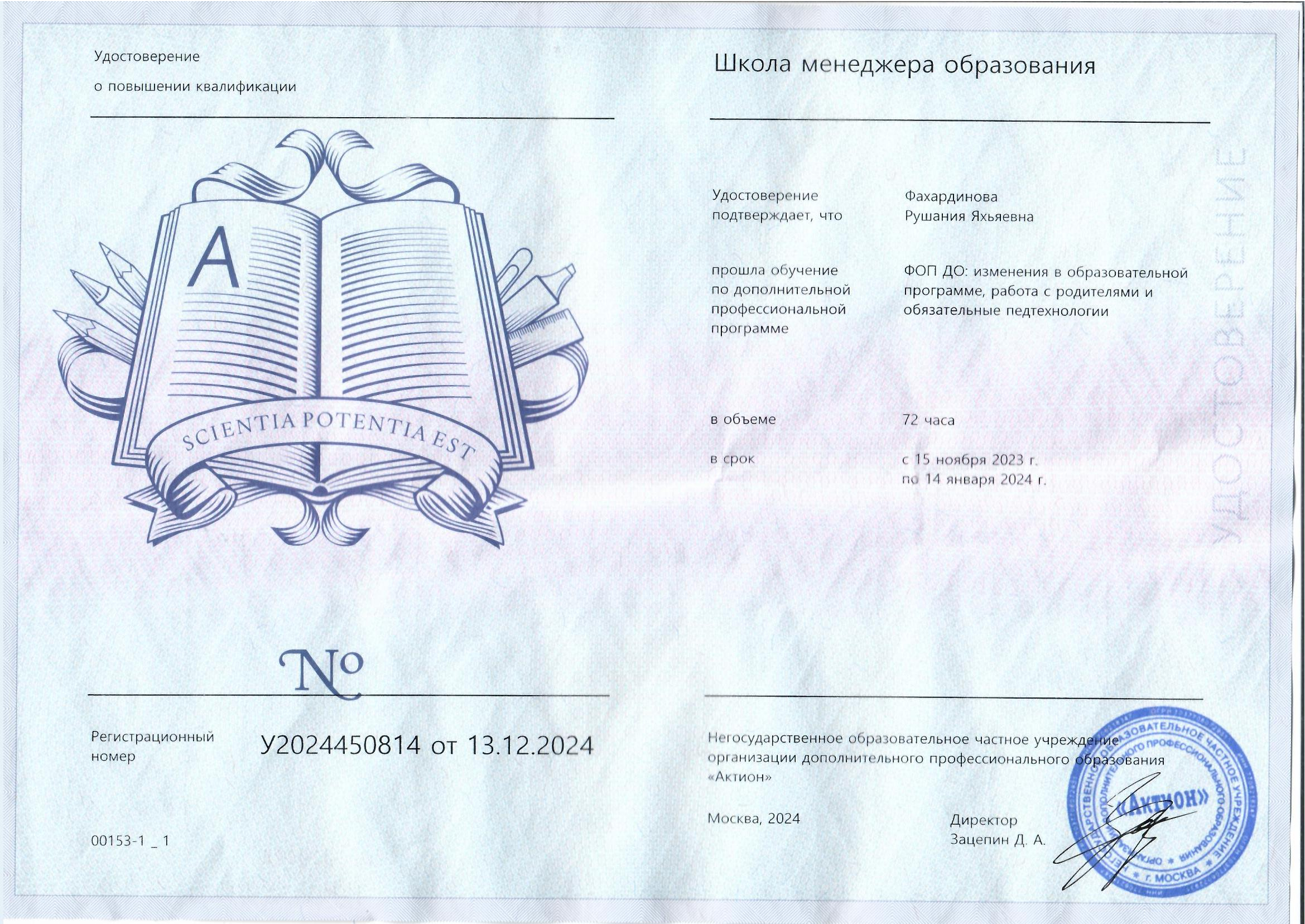 1. ФОП ДО: изменения в образовательной программе, работа с родителями и обязательные педтехнологии, 72 ч., 2024г.