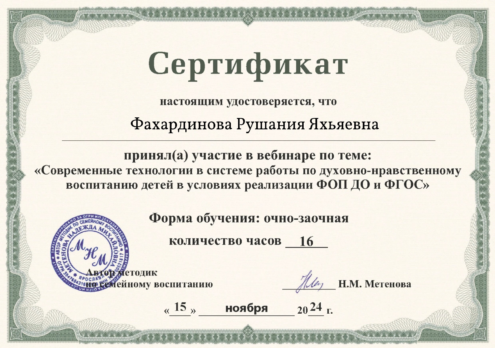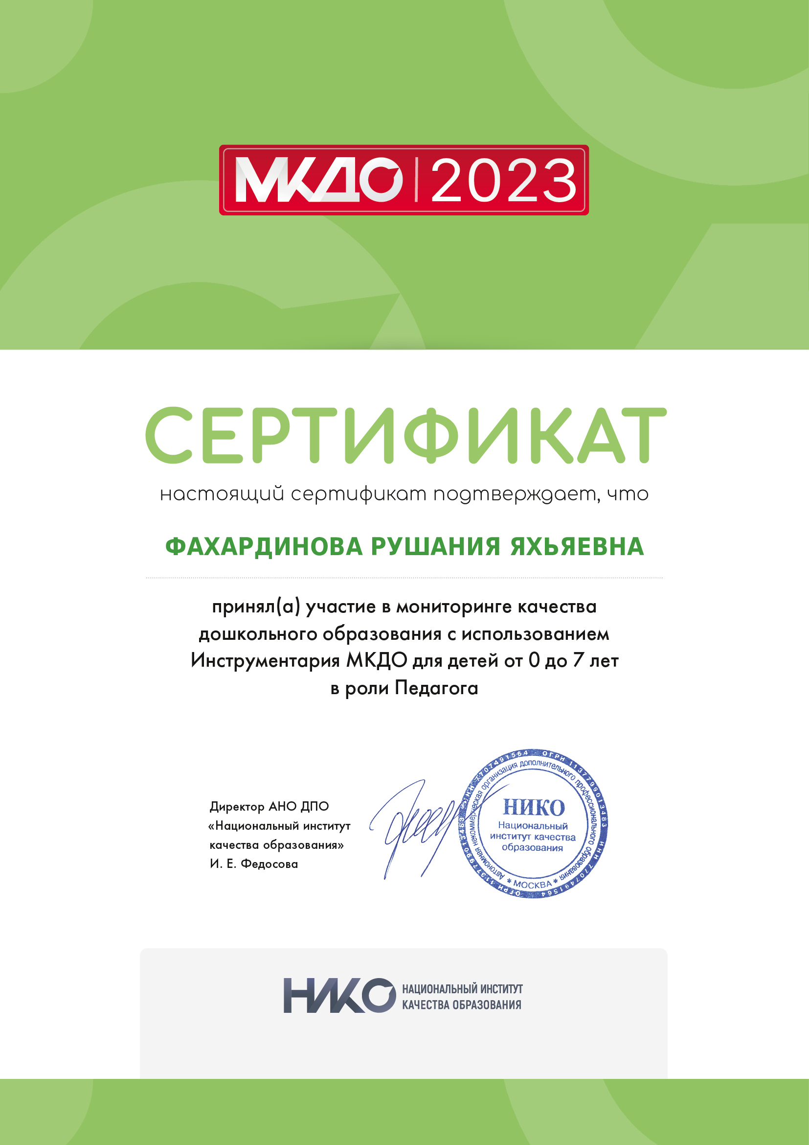 ФИО: Фахардинова Рушания Яхьяевна