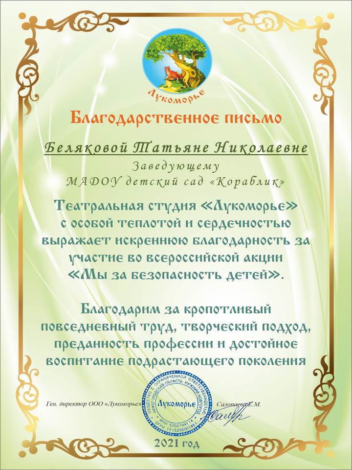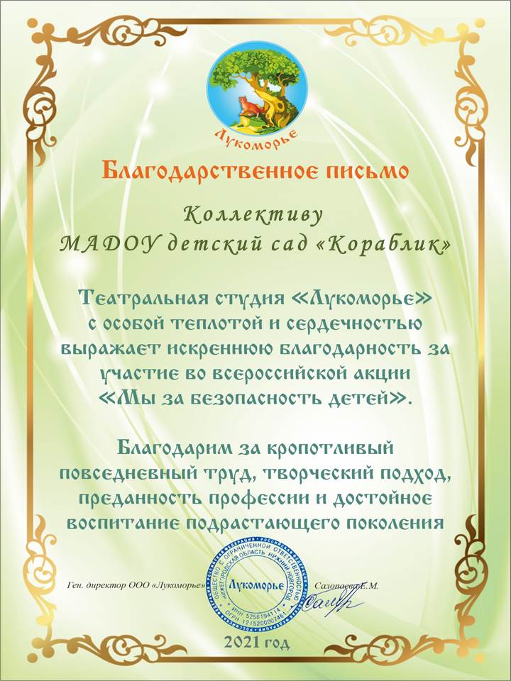 Светлана 13.12.2016 at 09:47 В преддверии Новогодних праздничных дней, мне очень хочется поблагодарить весь дружный коллектив детского сада «Кораблик» за внимательное и чуткое отношение к нашим детям. Профессионализм, огромный человеческий труд и педагогическое мастерство – вот основные принципы работы вашего дошкольного учреждения. Огромное спасибо за организацию и проведение детских праздников, познавательных и практических занятий, за общий положительный результат вашего труда у каждого ребенка. Наши дети приходят утром в садик с удовольствием и хорошим настроением, а когда возвращаются домой – они с радостью рассказывают о своих новых достижениях, показывают свои рисунки и поделки или просто демонстрируют разученные песни и танцы. Для нас, родителей, очень важно наблюдать, как с интересом блестят их глазки, как они расширяют свой кругозор, делают самостоятельные шаги в творчестве и познают окружающий мир. Уже совсем скоро самый долгожданный детский праздник – Новый год, начинаются предпраздничные сказочные хлопоты. Нужно сделать новогодние поделки на конкурс, придумать самый красивый костюм на елку, выучить стихотворение, выступить на празднике, ну и получить подарки… Дорогие педагоги, спасибо Вам за этот праздник новогоднего настроения, за Вашу сердечную теплоту и ласку, за талант и оптимизм, за каждую частичку Вашей души, которую Вы вкладываете в каждого ребенка! Пусть наступающий год принесет Вам много счастья, удачи, улыбок, тепла и света! Пусть он будет полон ярких красок, приятных впечатлений и радостных событий. Желаю Вам в новом году быть здоровыми, красивыми, любимыми и успешными! А в работе – профессиональных успехов, неистощимой выдумки, послушных воспитанников и благодарных родителей!